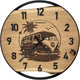 Runde Wanduhr aus Eichenholz, 50 cm, schwarzer Rahmen, Teilstriche Ziffern, Wald und Berge, Aufschrift THUN