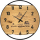 Runde Wanduhr aus Eichenholz, 35 cm, weisser Rahmen, arabische Ziffern, schneebedeckte Berge, Skifahrer